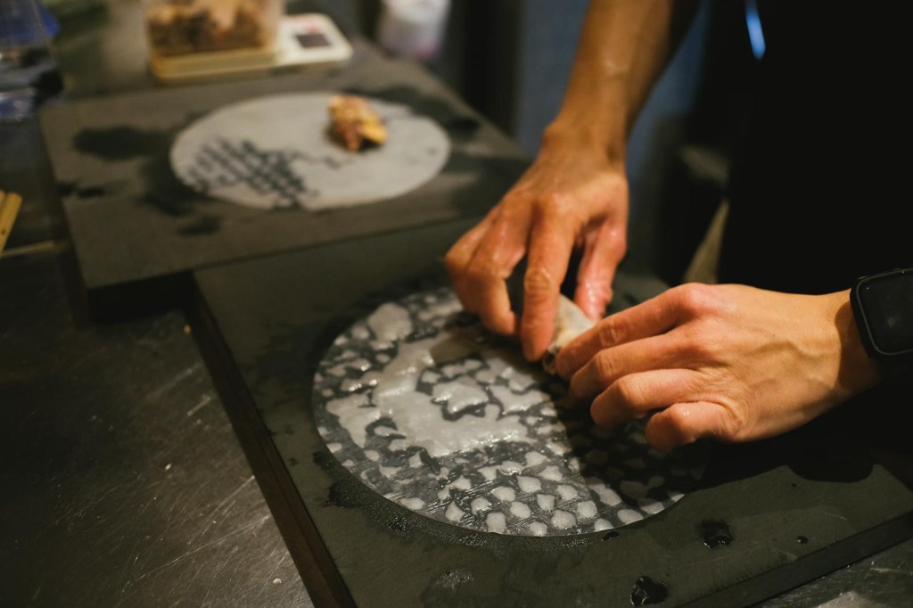 When asked about his approach to generating ideas, he emphasizes the importance of “knowing the fundamentals” first. He thoroughly researches a single dish or ingredient, then gradually transforms it, considering it from different angles and refining it. The dishes born from this process maintain their uniqueness while serving as “conversation starters.”